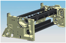 تمامي قطعات ماشين كه به سمت چپ و راست جابهجا ميشوند روي يك تكيهگاه نصب شدهاند كه موقعيت آن به راحتي قابل تغيير دادن است.